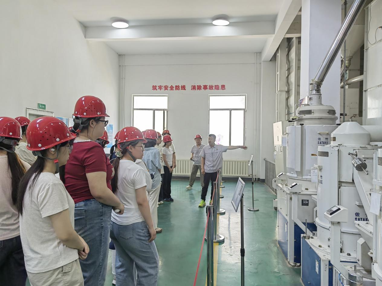 全体师生在公司领导的带领下,深入一线实地了解粮食入库、储存、加工、出库等各个环节,并有专业人员进行详细地讲解。同时,邀请学生参与体验。通过实地参观、体验和交流,学生们不仅学到了书本上没有的知识,还深刻体会到了理论与实践相结合的重要性。